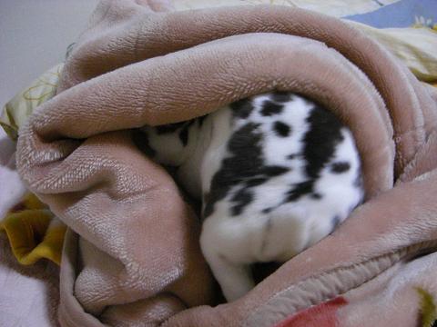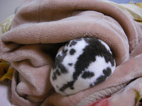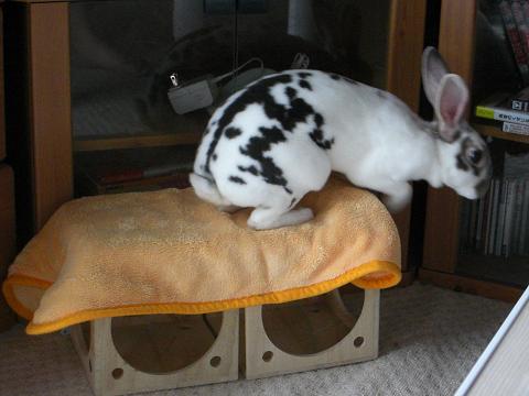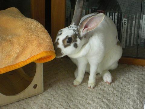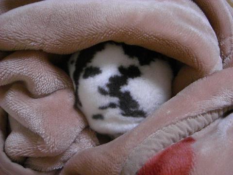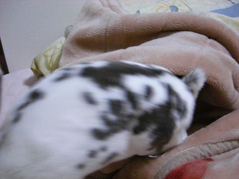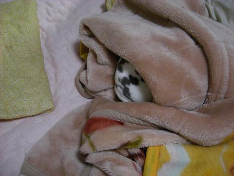 毛布の空間を良い具合に穴に見立てているようですが…。