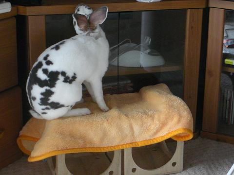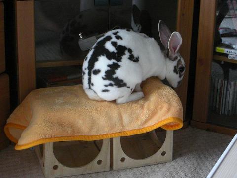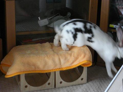 と言うことで、お嬢さんに乗っかって遊んでもらいたいものや、階段代わりに使って欲しいものの上にはかならず布を被せることにしております。