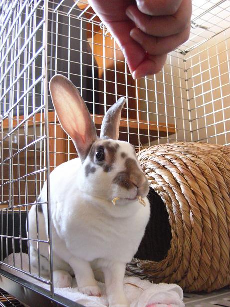 最近ストーカーお嬢さんと化しているこはるさんなのでハハが掃除中はケージの中で我慢していただいております。