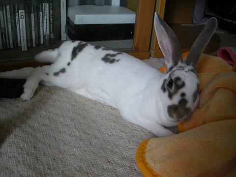 なんか他所のうささんのくつろぎポーズより小生意気に見えるだけなんですけどね。
