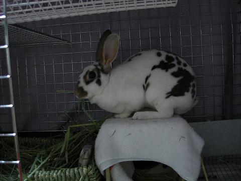 最近やっとこの牧草の中身も1/3は減ってきてお嬢さんが飛び乗ると「ぼこっ」と下にへこむのでお嬢さんびっくりダイブをするのですが…近頃はわかっていて遊んでいるようです(--;