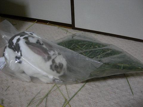 我が家では「おいしい牧草」で通っているWOOLYさんのイタリアングラスの袋の中にいつの間にか入り込みやがってましてね…。