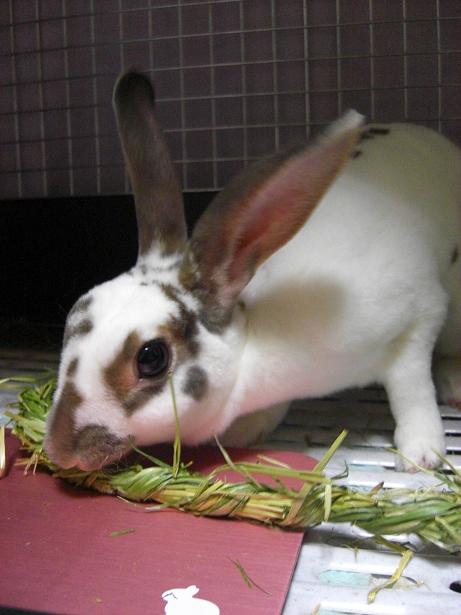 以前、先代、太陽くんに白茶くんからおすそ分けを貰ったことがあるんですが、牧草嫌いの太陽くんには無用の長物…豚に真珠?猫に小判?馬の耳に念仏……無残な扱いをされたのです。