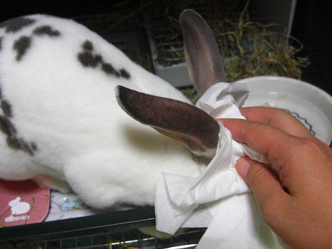 水でたっぷり濡らしたティッシュで拭き取った後に乾いたティッシュで揉み拭き……気持ち良さそうに顔押し付けてくるのがほんのり腹立つんですけどね…フロイライン?( ̄ー ̄;