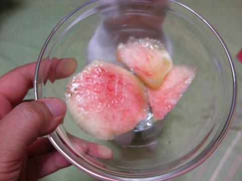 昨日書こうと思ったんですけど先週、会社でモモを貰ったんですよ。お客さんから戴いたモモは一人1個。