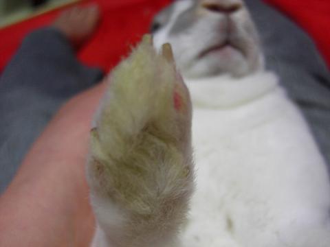 すぐ塗るからねっ…ってなワケでこんな状態のピンクの部分が両前足にあるのでぬりぬり。