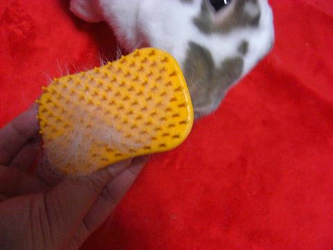 少しハハの影で暗いですがちゃんとブラシにこはるの毛が!抜け毛が絡まっているじゃありませんかぁっ!!