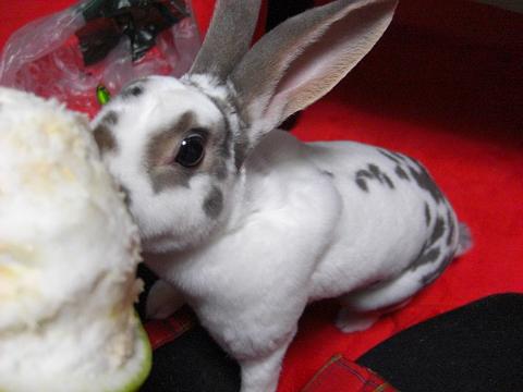 右を向いてるうさぎさんに見えなくも無いし、左側を向いているうさぎさんに見えなくも無く…まぁどちらにしろうさぎの中にうさぎがいるv と言うオヤバカならぬうさぎバカなただの独り言です(^×^;