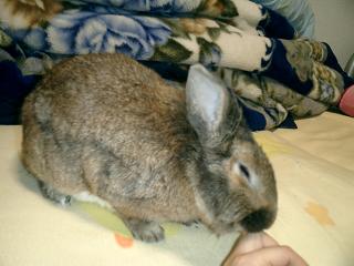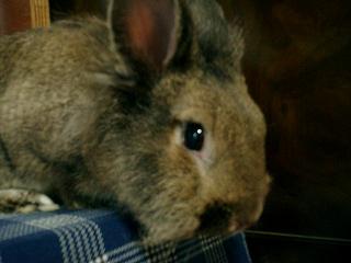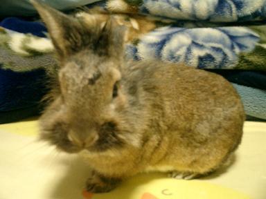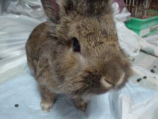 そこに通い始めて水槽のようなケースに入れられた子兎がたくさんいました。早く良いご主人に会えると良いねーと時々見ていたんですが、ある時気付いたんです。記憶にあるのは5羽くらいの小さな子兎の隣のケースに1羽だけいる茶色い仔。その仔もまだ小さくて赤ちゃんうさぎだけれど隣の5羽はまだ1~2ヶ月経ったかどうかくらい。その仔たちに比べれば大きく見えてしまうんですよね。早くご主人様見つかるといいねーとなんとなく見続けて2ヶ月。その仔の隣では何回か仔うさぎたちが入れ替わりました。お店の人に聞いたら「うちは処分とかしないから、ずっといるのかねぇ」って。処分…なんて生々しいとぞっとしましたがうちには既に2羽…とてもムリだと諦めました。