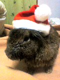 去年ひいろさんに戴いたサンタ帽子です。ほんのり太陽には大きいんですが、この仔は立ち耳なので中に入れて被らせるのに丁度良かったですv